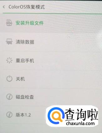 选好语言之后,进入colorOS恢复模式,选择清楚数据进入下一页面,如图所示。