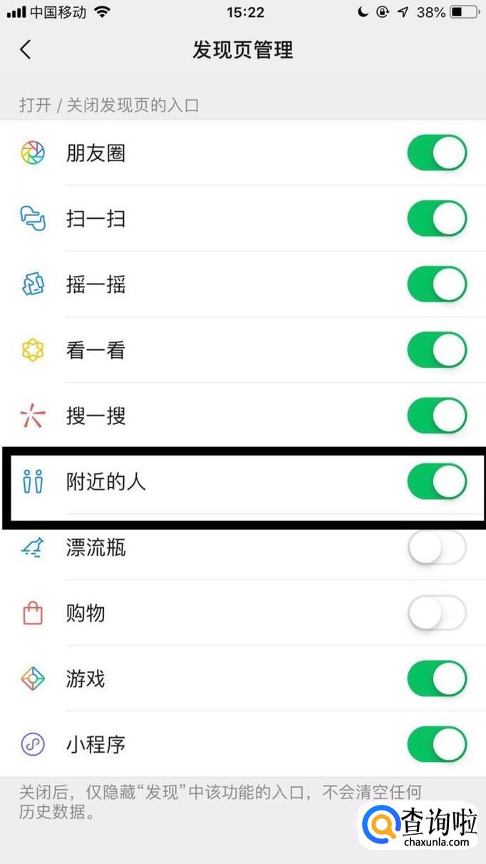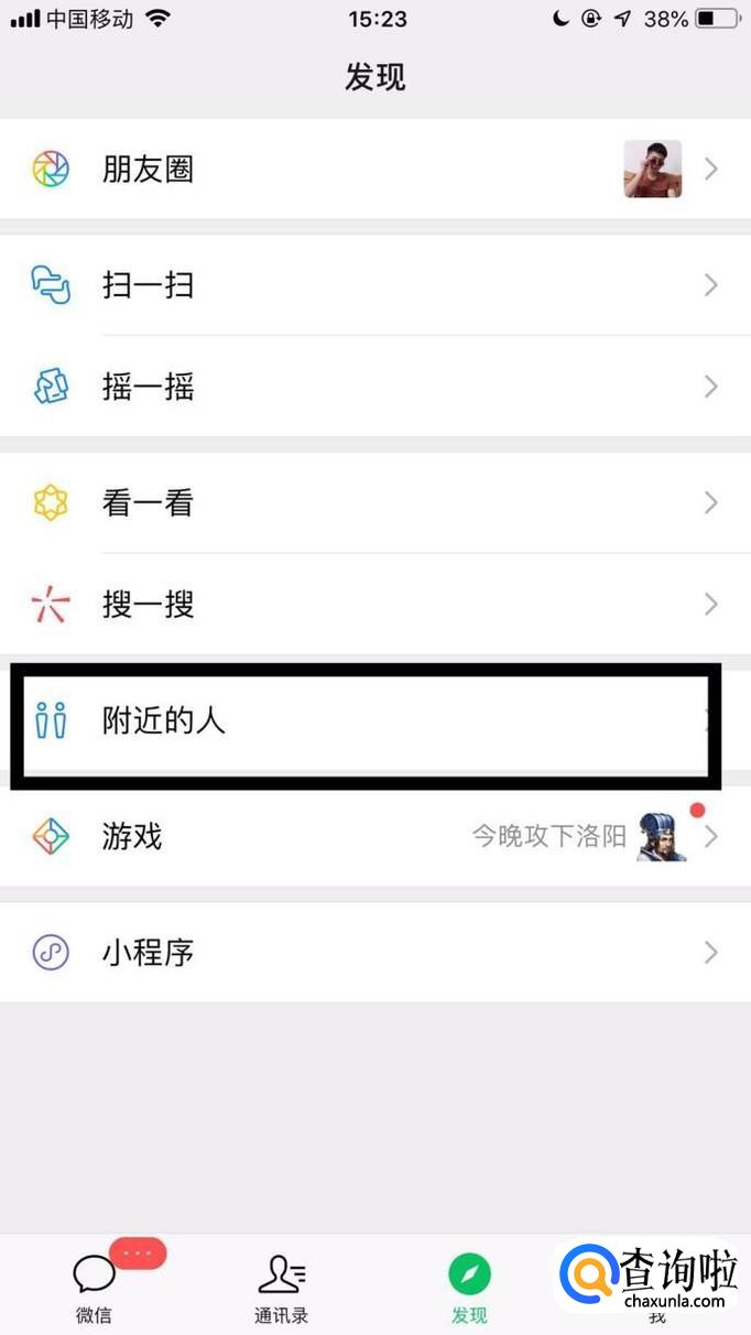 这样操作完成,我们就可以在发现界面开启附近的人功能了。