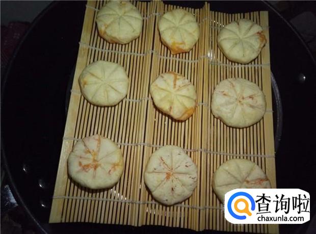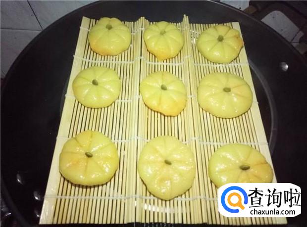 蒸笼上抹油,然后把南瓜饼放锅里蒸,南瓜之间留一定的间隙,大概蒸五分钟左右即可,很容易熟的。