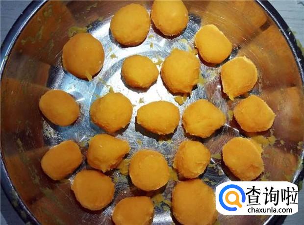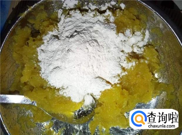 南瓜和糯米粉的分量一样,分多次加入糯米粉。
