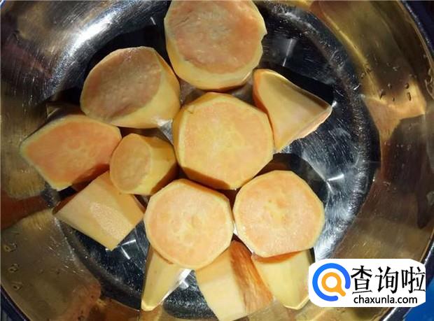 番薯清洗干净,削皮,切成小块,放蒸锅上蒸软。