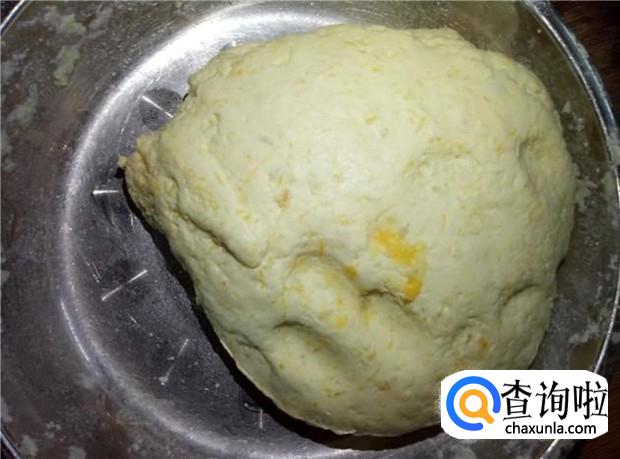 手上抹上花生油,用力搓面团,搓好的面团放置半小时发酵。