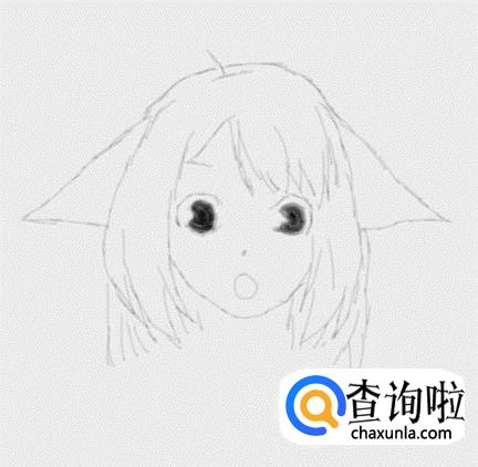 再在头发的下面画出涂山红红的两只眼睛,然后在眼睛下面画出涂山红红的鼻子和嘴巴,最后再画出涂山红红的面部,如图所示: