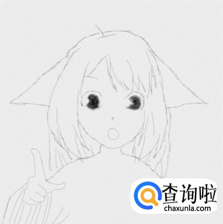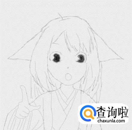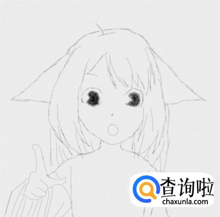 在头部下面画出涂山红红的脖子,然后在左侧画出涂山红红的左胳膊及左手,如图所示: