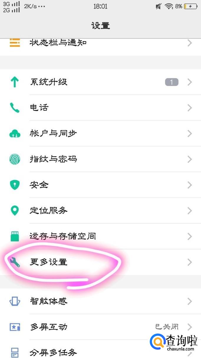 接下来,大家滑至屏幕,找到“更多设置”并点击进入