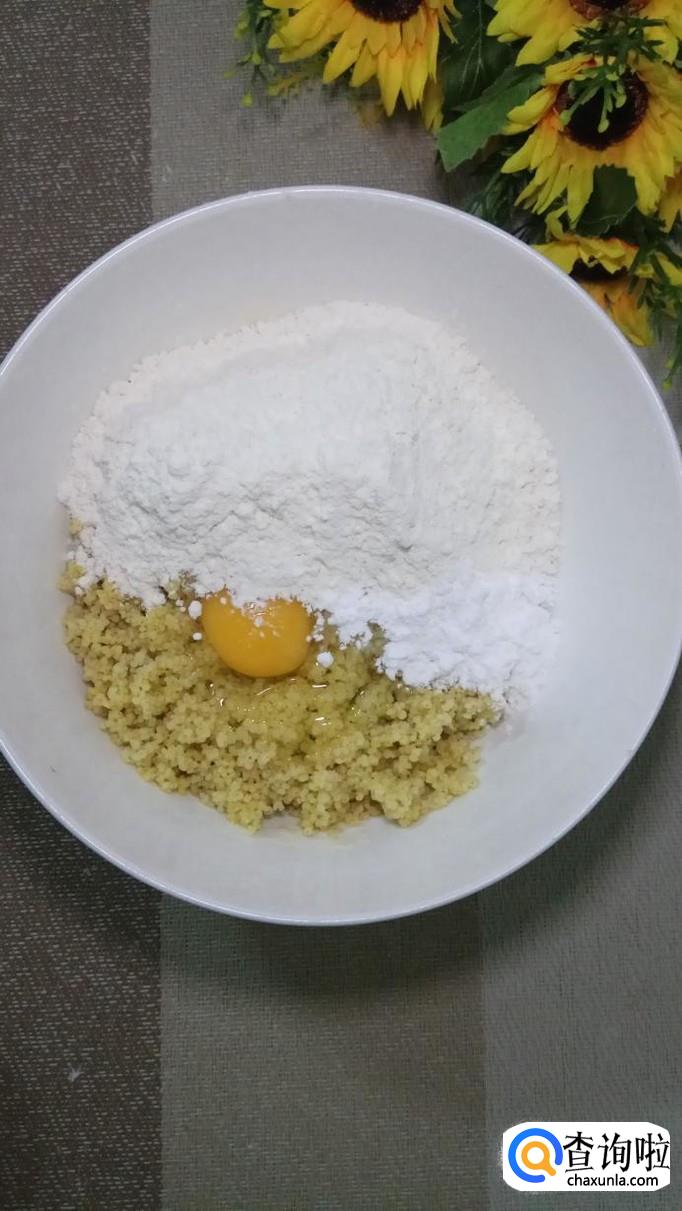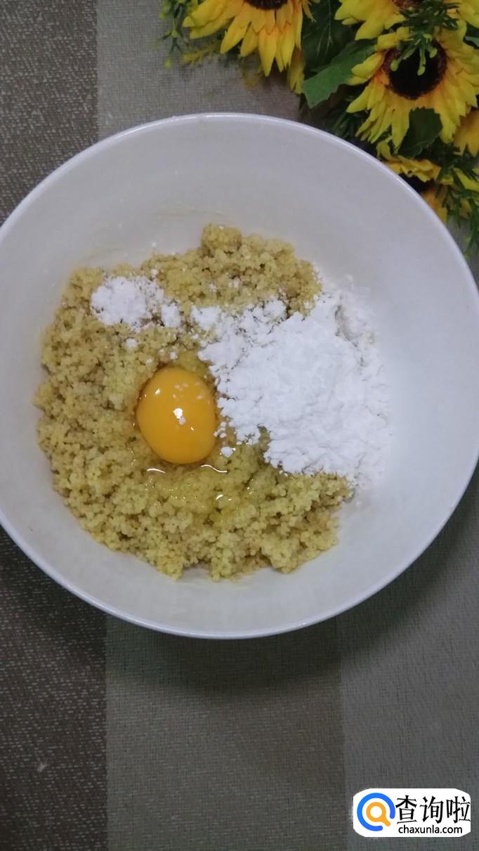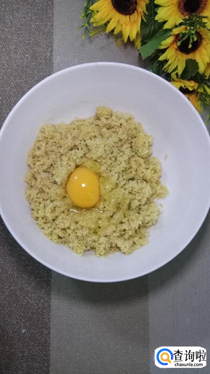 小米蒸好后取出,打入一个鸡蛋。