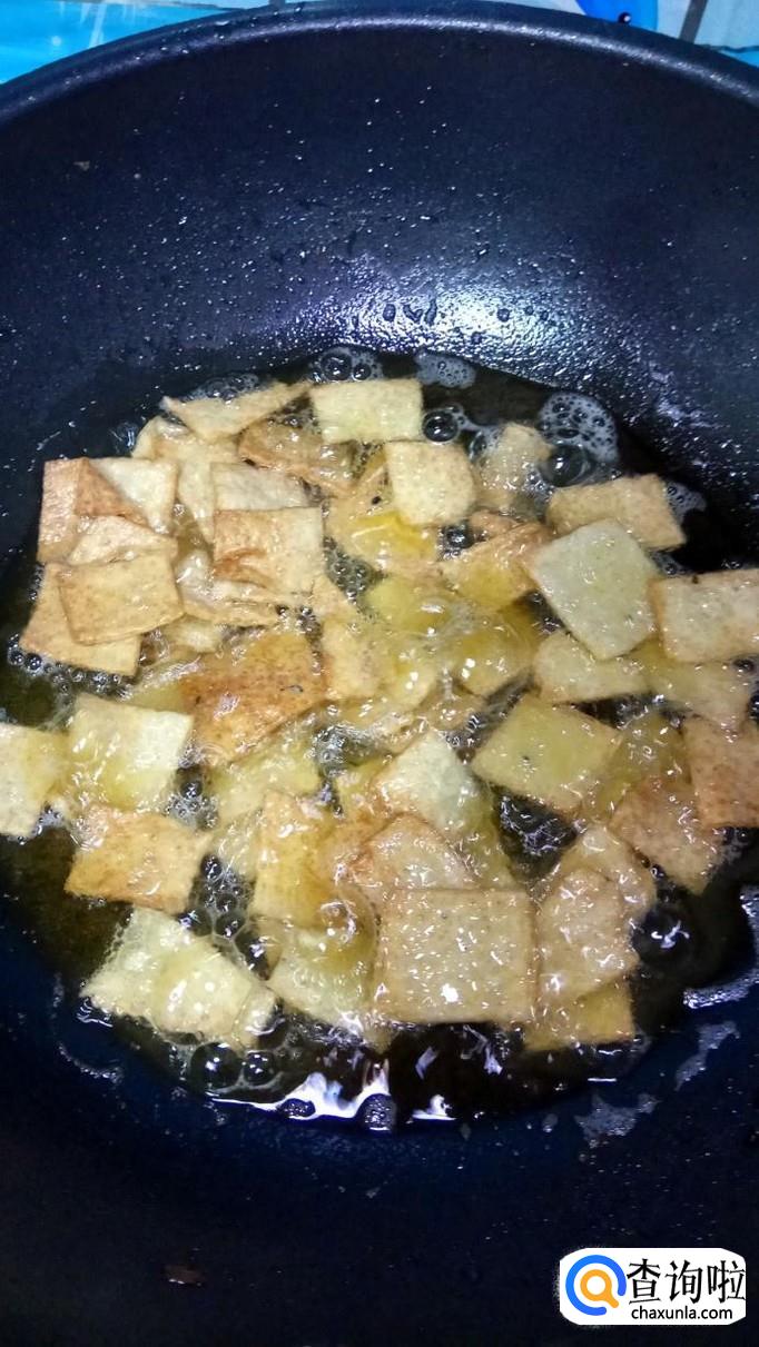 锅中放入适量油,油温五成热,将锅巴放入锅中,小火慢煎。