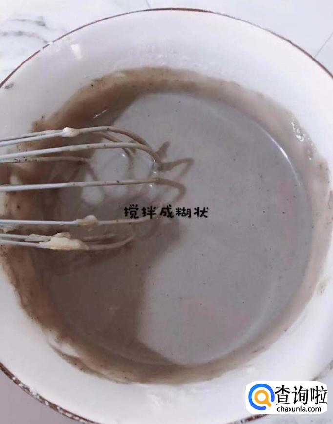 食材:牛奶80克,低筋面粉50克,糖粉3克,鸡蛋一粒,黑芝麻核桃酱12克。