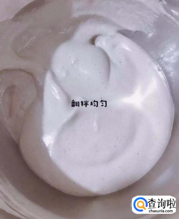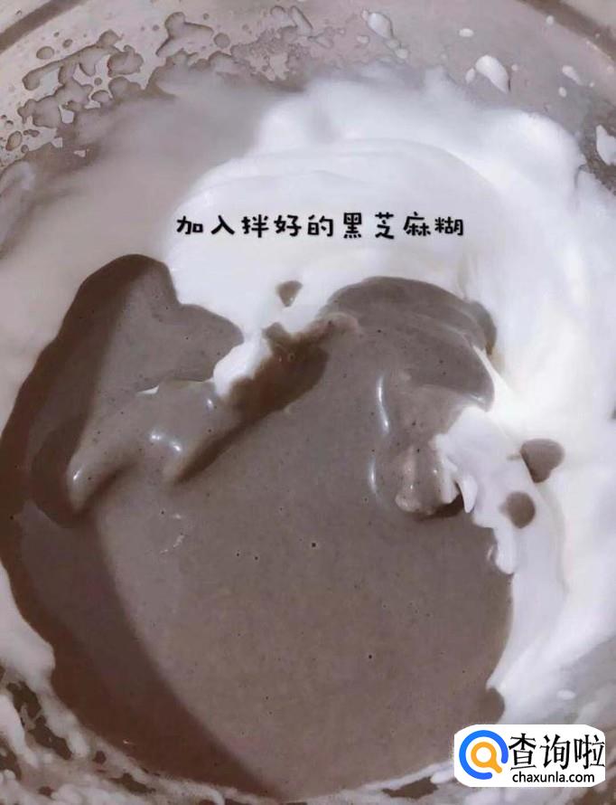 接着把搅拌好的黑芝麻糊倒进蛋清,如下图所示。