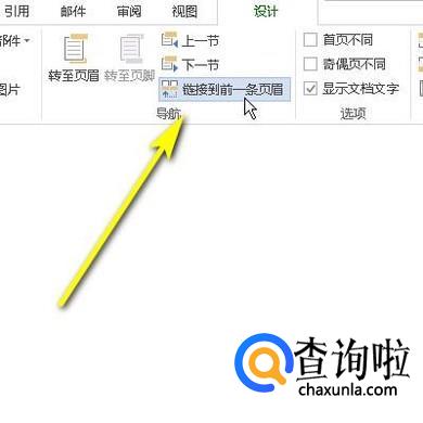 如图中所示,点击:链接到前一条页眉