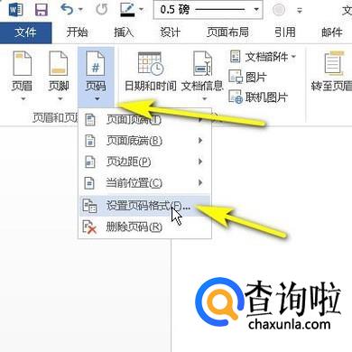 如图中所示,点击页码下拉按钮,弹出菜单再点设置页码格式