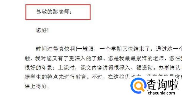 在写书信的时候,首先应该在首行的定格这里写上称谓,然后再加上冒号。当然也可以在称谓的前面加上尊敬的用词。