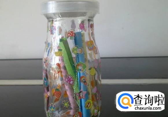 不会画画,不会折纸,没有艺术感,都不要紧,买点现成的粘贴,将他们随便粘在瓶子上,同样能打造出漂亮的许愿瓶。