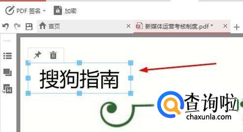 然后我们点击三角符号,点击一下我们刚才设置好的签名标签,然后鼠标移动到我们的PDF内容,将签名放置到我们想要放置的位置就可以了。