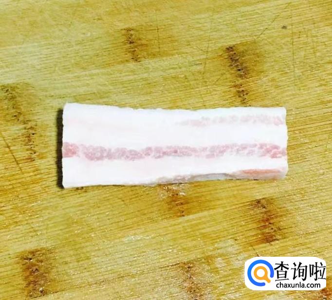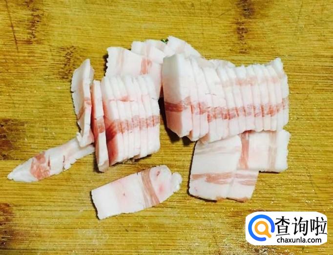 五花肉一块用温水冲洗一下切成厚薄均匀的五花肉片