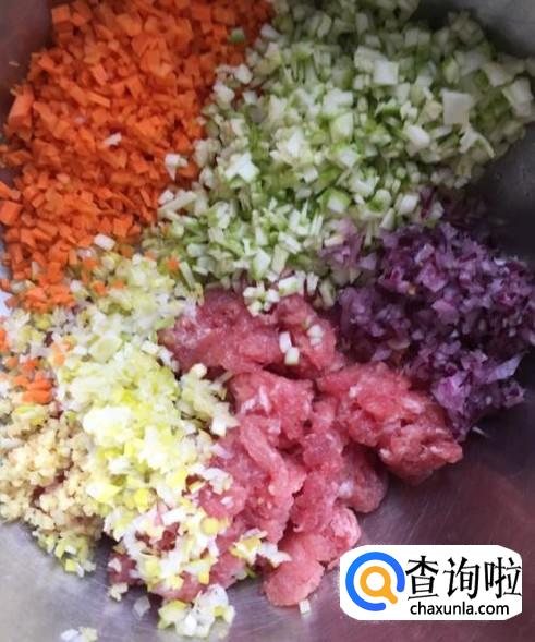 肉馅适量,剁碎,也可以选择搅碎,备用。