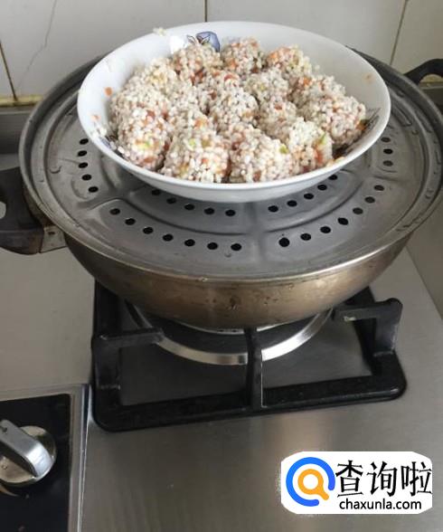 锅里加水,将团好的丸子放上蒸,蒸25分钟即可。