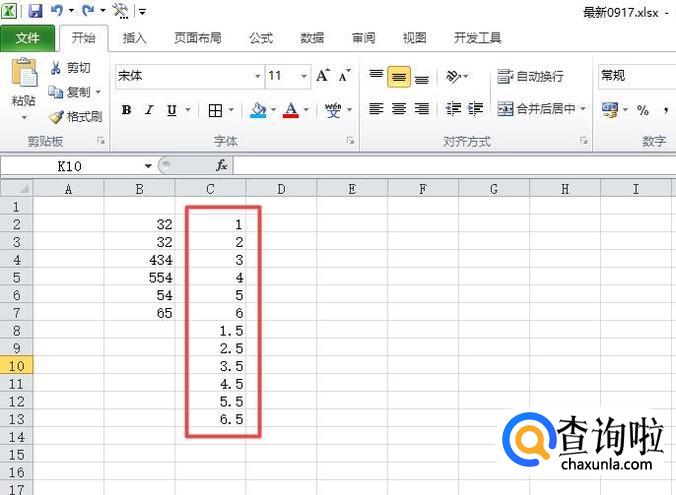 然后我们在这组数字后面的一列中输入如图所示的数字;