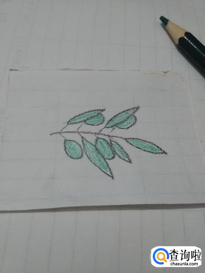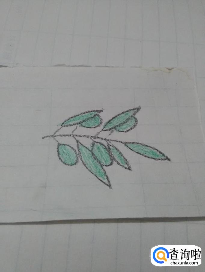 用绿色彩笔将椭圆形橄榄涂成绿色,橄榄枝就画完了。