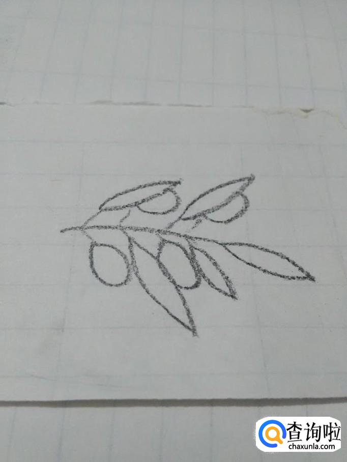 在剩下的短弧线末端,画几个椭圆形,表示橄榄。