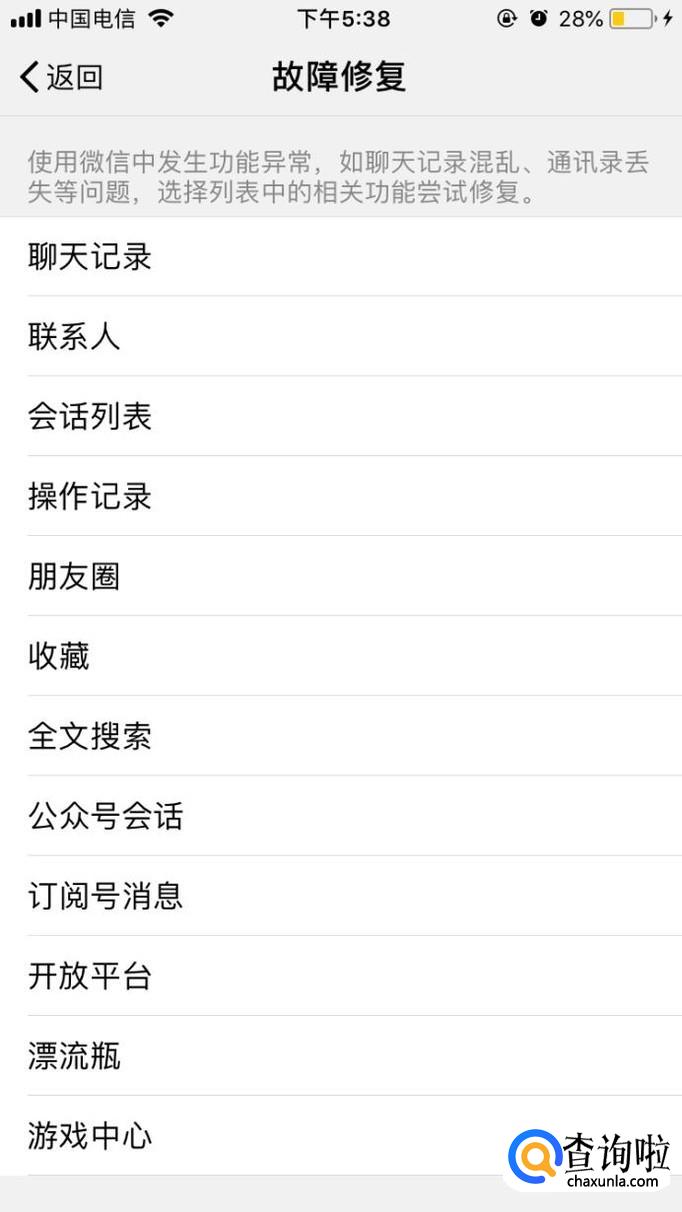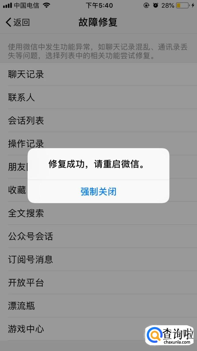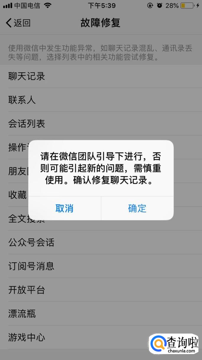 点击【聊天记录】,进入修复微信聊天记录,等待数据恢复。