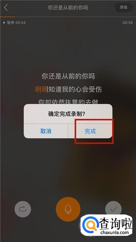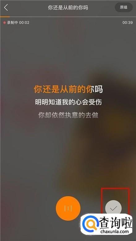 录歌完成,点击屏幕右下方的“√”,如下图所示。