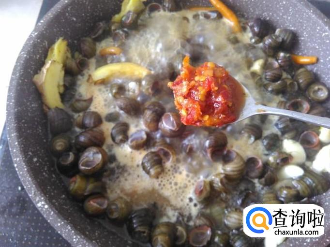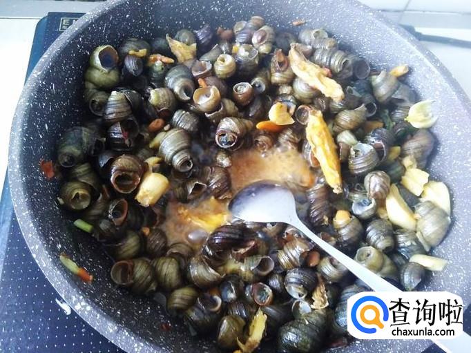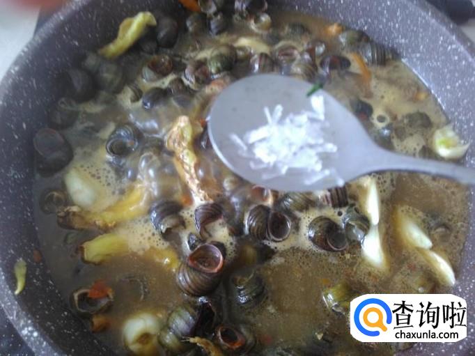 然后放石螺进去,加适量的盐。