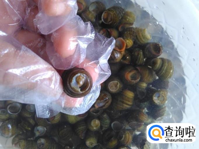 把石螺尾部剪掉,然后把石螺清洗几遍。