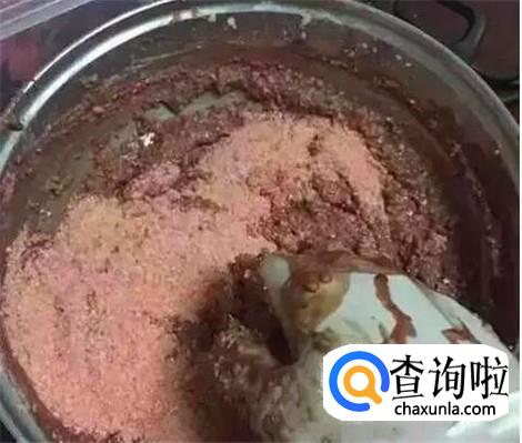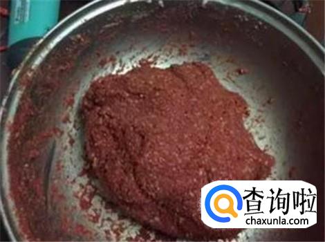 把虾泥和适当鸡血以及大米饭放进去一同搅拌。