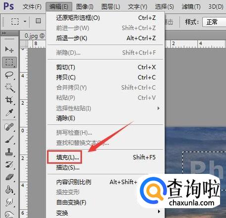 框选出水印之后,我们在编辑菜单里找到填充选项,如图所示: