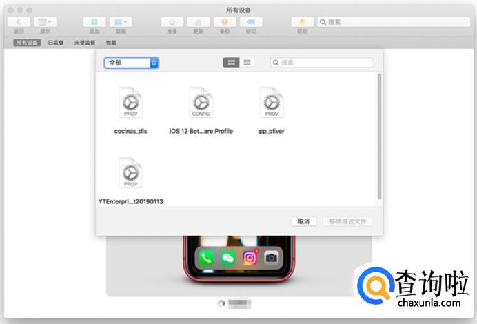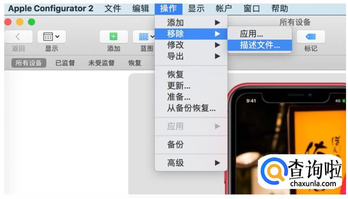 点击上方菜单栏的「操作」-「移除」-「描述文件」。