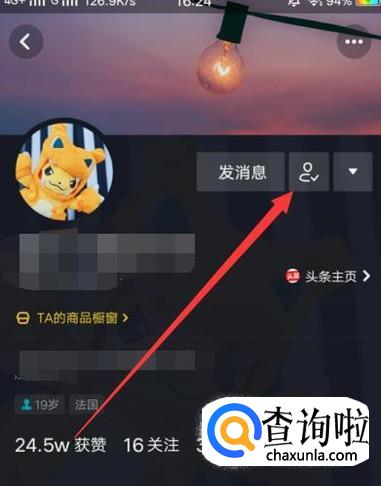 进入想要取消关注的人的主页,点击图示位置即可取消关注,如图所示。