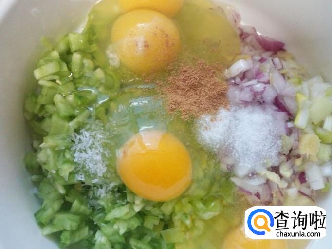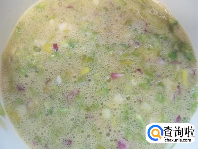 放入盐,味精,五香粉,拌和均匀,搅拌成鸡蛋液。