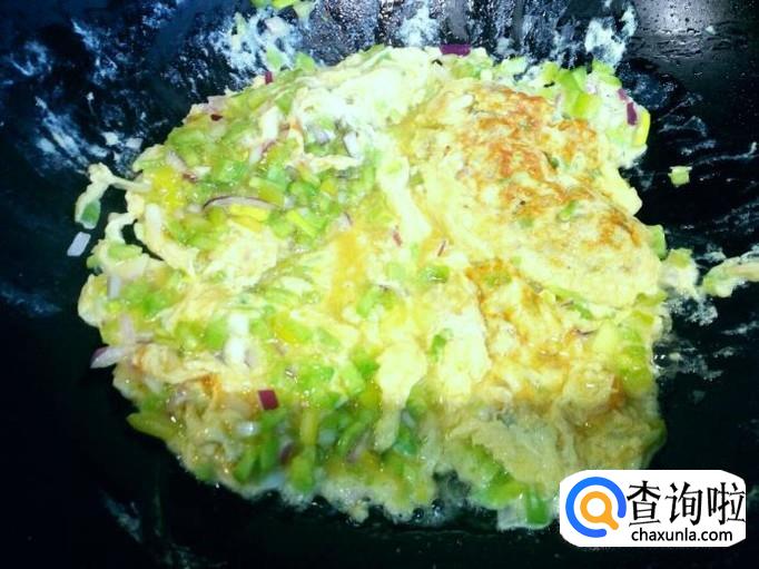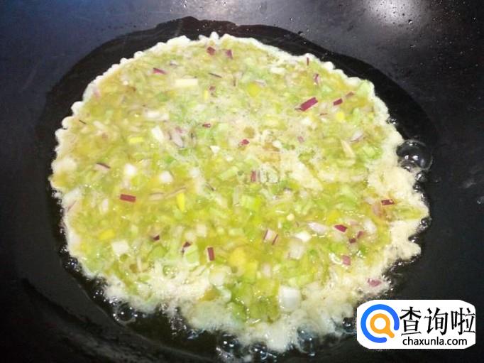 锅里放入油加热,油热后放入鸡蛋液,小火煎塌。