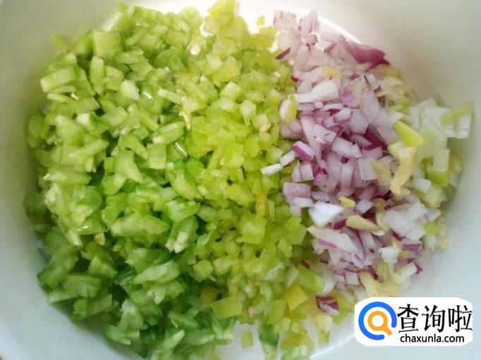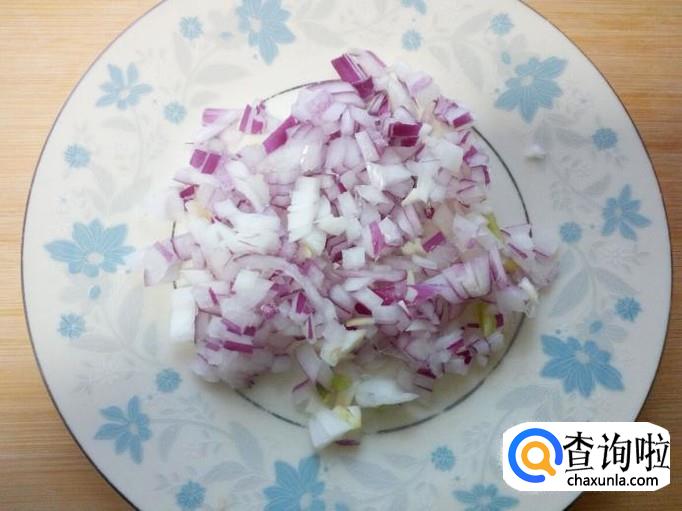 圆葱去皮,用水清洗干净,控干水分,切成碎丁。