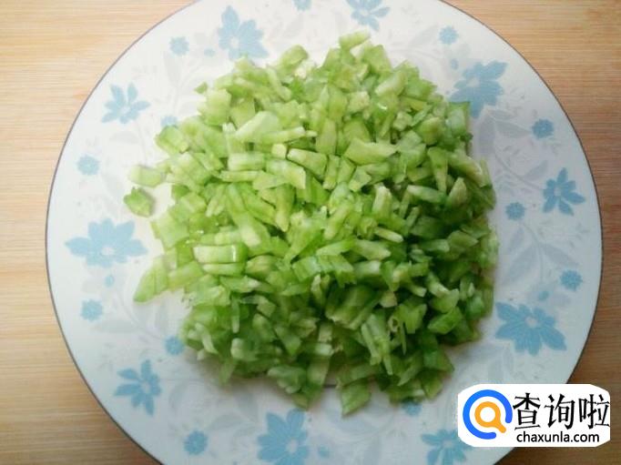 苦瓜去瓜瓤,用水清洗干净,控干水分,切成碎丁。