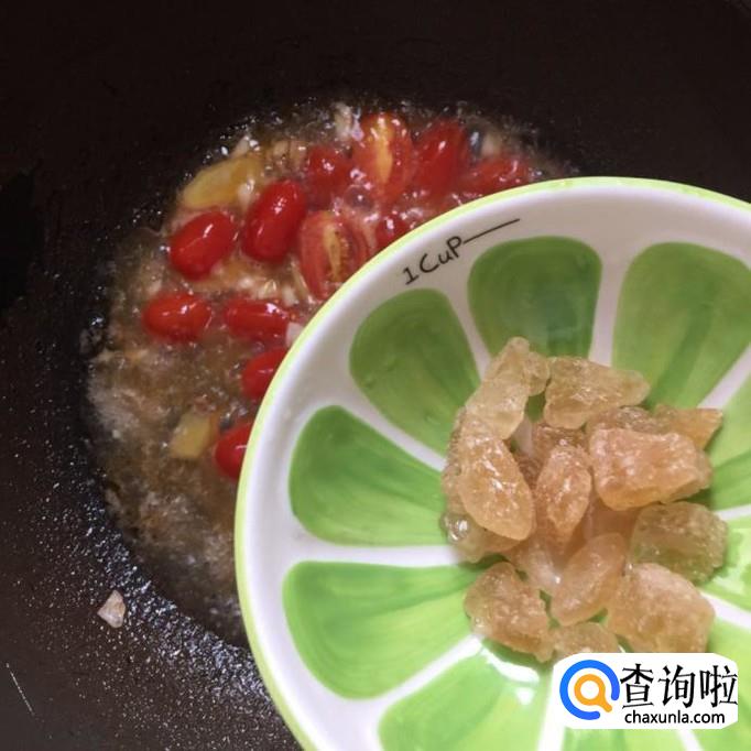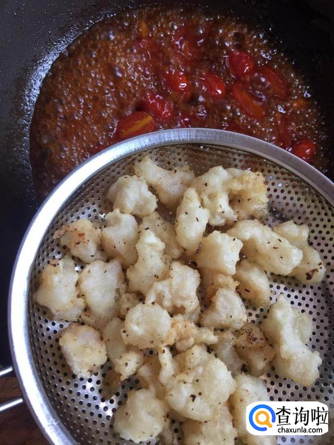 龙利鱼,玉米淀粉,食用油,蒜头,圣女果,冰糖,生姜,香葱。