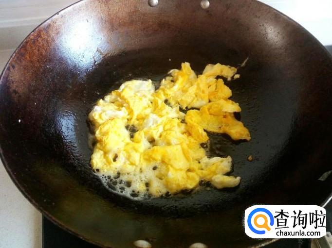 用锅把鸡蛋先炒出来,装盘备用。