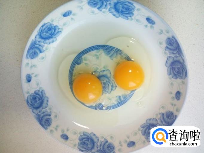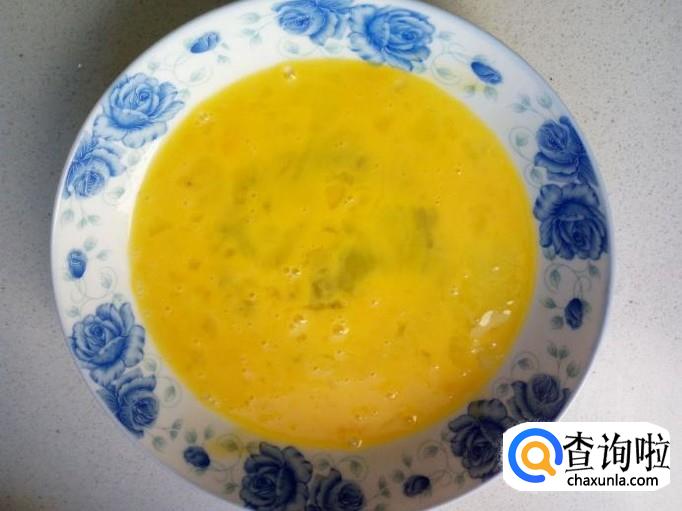 鸡蛋打人盘中,搅拌成蛋液。