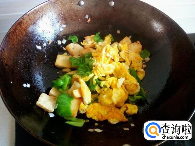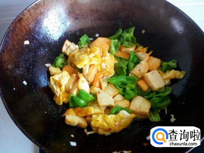 豆腐和鸡蛋都是煎塌过的,略翻炒一下即可,放入味精,关火出勺。