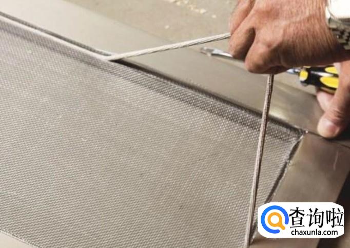 最后我们就可以把新的纱网放在窗框上面了,我们先用压条固定一端,然后到窗框的四个边,全都用压条压实就可以了。