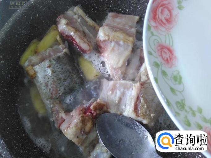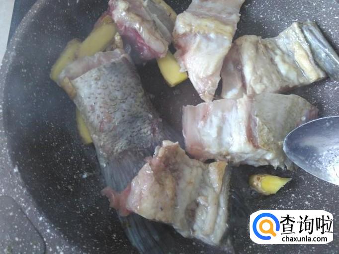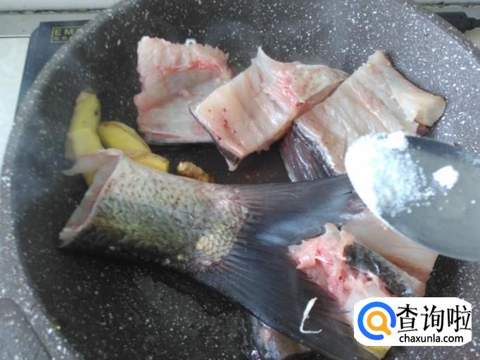 鱼骨下锅,加适量的盐翻炒一下。
