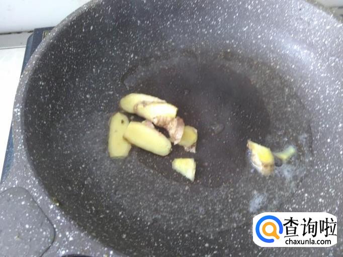 开火下油,放姜片进去。