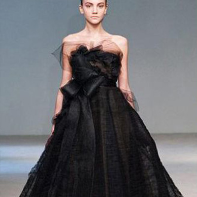 其实黑色婚纱应该是最高贵的婚纱。黑色向来给人沉稳、幽邃还有些神秘的感觉,在时装界,黑色也是代表稳定、庄重的样式。其实黑色婚纱散发着迷人的高品位以及满满的贵族气息,极具现代感。当然现代人一提到婚服,第一反应就是西方的白色婚纱以及中式的红色婚服,因为在中国总觉得结婚是一件喜庆的事儿,所以觉得应该选择喜庆的颜色。