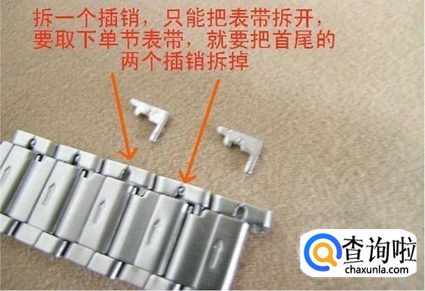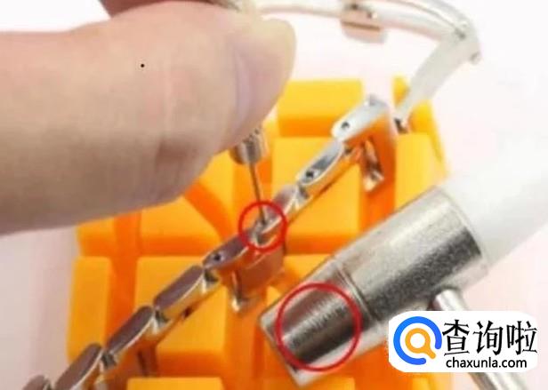然后我们可以先试一下自己的表,看一下自己的表带长了多少,自己心里有个数,然后通过表带上面的箭头找到表带链接轴的方向。