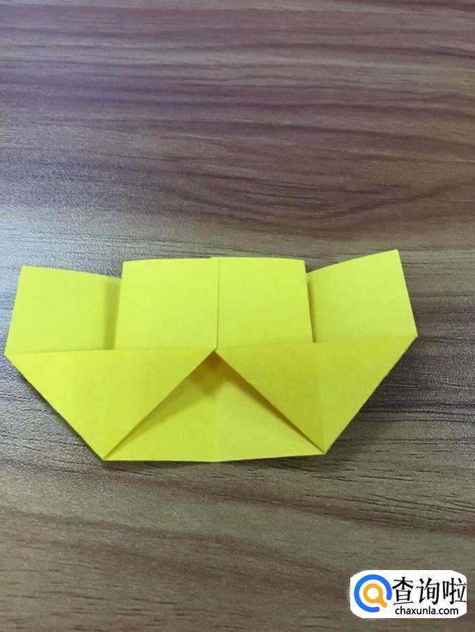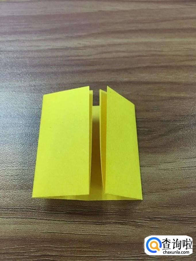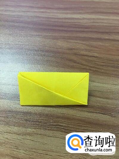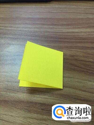 首先将纸张对折成长方形,把左边的边与右边的边对折成小正方形。如图
