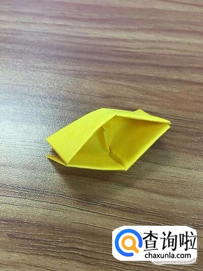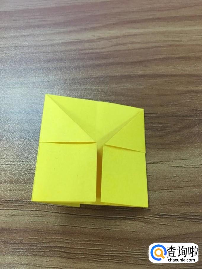 翻到背面,将两边露出的面向内折后出现一个正方形。如图