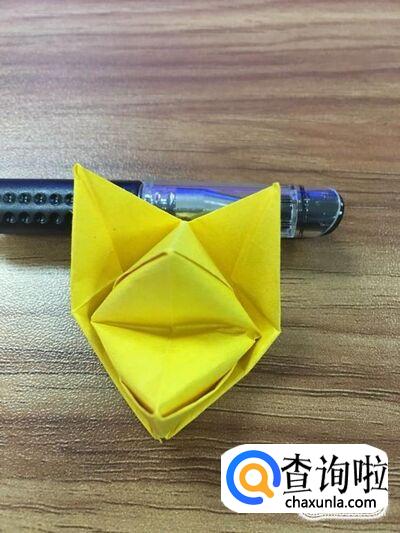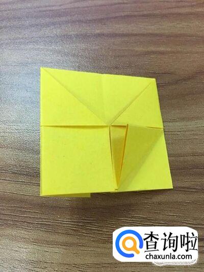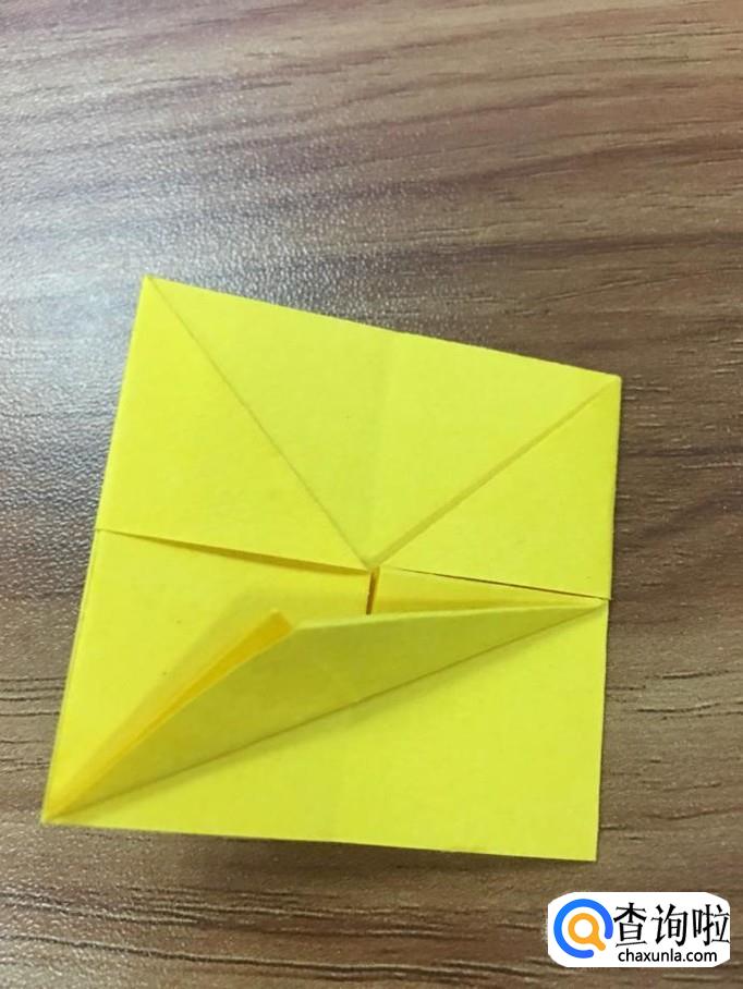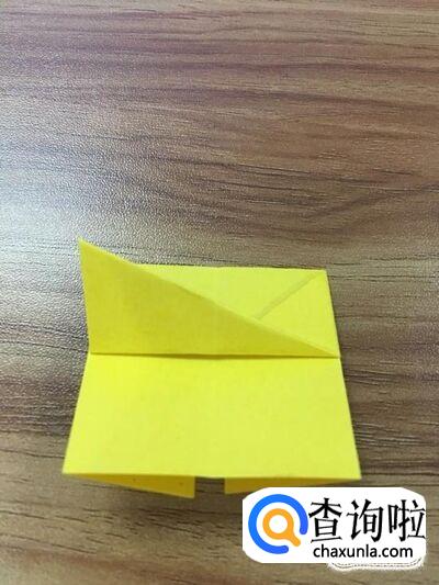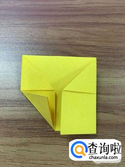将右下角的面折出个小正方形后,延左边左下角折出个钝角三角形。如图