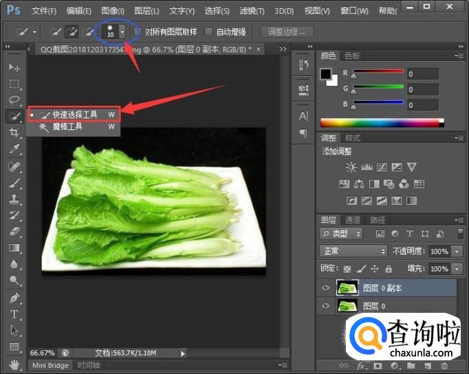 然后,我们点击快速选择工具,将参数调为合适的数值,如图所示。