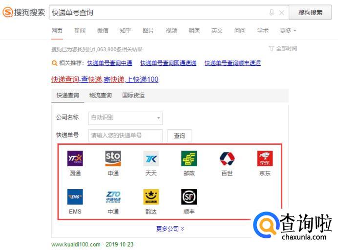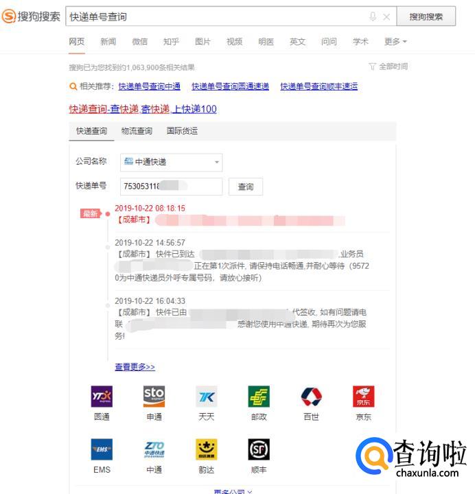 第一条搜索结果中可以看到,这里能查的快递涵盖了大部分快递公司。